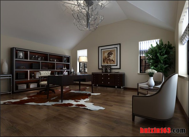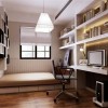 整体色调呈现明朗欢快、协调一致风格特点,现代风格的设计理念讲究贴合现代快节奏的生活特点,具体到书房的装修设计中,针对的是书房特定的区域空间。色彩选择方面,以高调的亮色和低调的暗色进行对比配置,或以其中一项做为点缀效果,看起来对比强烈,增加视觉冲击力,延伸空间视觉效果,起到了很好的作用。