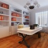 整体色调呈现明朗欢快、协调一致风格特点,现代风格的设计理念讲究贴合现代快节奏的生活特点,具体到书房的装修设计中,针对的是书房特定的区域空间。色彩选择方面,以高调的亮色和低调的暗色进行对比配置,或以其中一项做为点缀效果,看起来对比强烈,增加视觉冲击力,延伸空间视觉效果,起到了很好的作用。