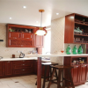 大部分日式系列厨房都会以开放式的状态呈现在大家的面前,当然,任何事情都不排除有意外的情况出现。其实,开放式的厨房处理,将实用美观的餐桌等其它厨房配置紧密相连,加强了家人间的沟通交流,显得居家环境更加温馨舒适,整体尽显温和,而且不失素养的日式本毛贼特征。