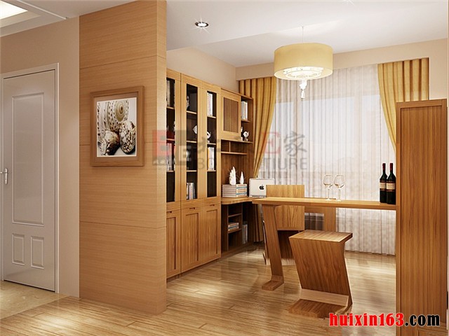 设计师充分依托此套户型中关于书房区域空间的结构特点,和业主进行有效沟通后,以综观全局的设计思路,遵循现代风格的设计理念,把握色彩的整体平衡,运用合理的空间布局,发挥书房的职能特征,以文化休闲、温馨舒适的格调进行协调处理。地板处理厚重大气,墙面和顶棚处理彰显简洁明快,整体优雅从容,和谐统一。 更多»推荐家装效果图