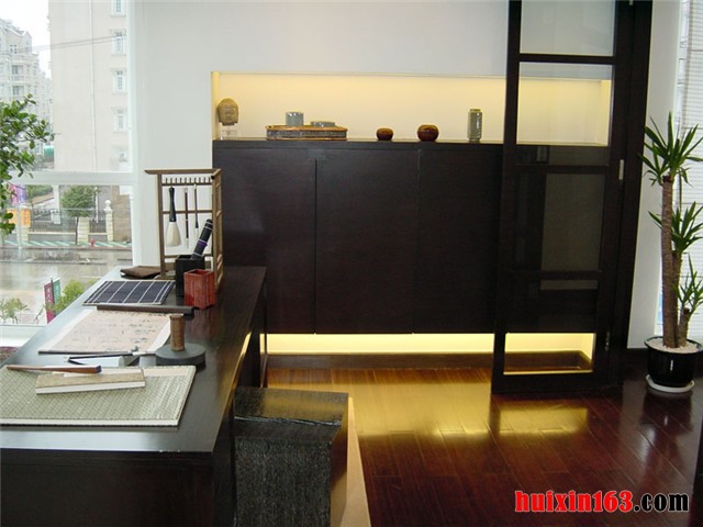设计师充分依托此套户型中关于书房区域空间的结构特点,和业主进行有效沟通后,以综观全局的设计思路,遵循现代风格的设计理念,把握色彩的整体平衡,运用合理的空间布局,发挥书房的职能特征,以文化休闲、温馨舒适的格调进行协调处理。地板处理厚重大气,墙面和顶棚处理彰显简洁明快,整体优雅从容,和谐统一。