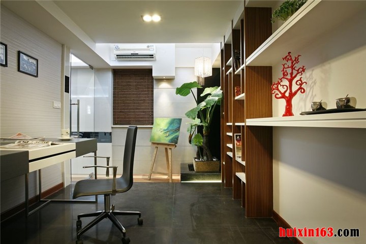 设计师充分依托此套户型中关于书房区域空间的结构特点,和业主进行有效沟通后,以综观全局的设计思路,遵循现代风格的设计理念,把握色彩的整体平衡,运用合理的空间布局,发挥书房的职能特征,以文化休闲、温馨舒适的格调进行协调处理。地板处理厚重大气,墙面和顶棚处理彰显简洁明快,整体优雅从容,和谐统一。