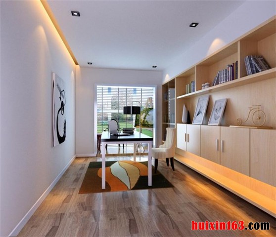 设计师充分依托此套户型中关于书房区域空间的结构特点,和业主进行有效沟通后,以综观全局的设计思路,遵循现代风格的设计理念,把握色彩的整体平衡,运用合理的空间布局,发挥书房的职能特征,以文化休闲、温馨舒适的格调进行协调处理。地板处理厚重大气,墙面和顶棚处理彰显简洁明快,整体优雅从容,和谐统一。 更多»推荐家装效果图
