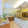 虽然整体效果看不出明显的线条勾勒,但从专业的设计角度来分析,线条的处理十分巧妙,对整体空间的布局和层次划分都产生了重要的作用。墙体构成十分贴合日式家装特征,而且色调与地面处理相互协调,与顶棚成相互对照之势,整体显得十分协调。感觉将我们带动了日本。