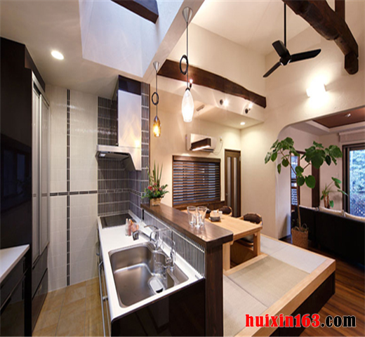 空间布局显得彰然有序,充分遵循了日式系列家装的一惯特点。简洁的基调控制,使整体显得干净自然,这在厨房这样的职能空间中显得尤为重要。以极富自然气息的环境配置为依托,协调色彩和线条等一同处理,将日式系列家装的精髓运用到厨房这个独特的职能空间中,彰然主次分明的设计理念。