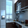 空间布局显得彰然有序,充分遵循了日式系列家装的一惯特点。简洁的基调控制,使整体显得干净自然,这在厨房这样的职能空间中显得尤为重要。以极富自然气息的环境配置为依托,协调色彩和线条等一同处理,将日式系列家装的精髓运用到厨房这个独特的职能空间中,彰然主次分明的设计理念。