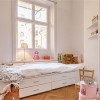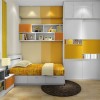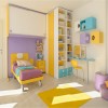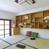 与一般家装风格对儿童房的处理运用多种亮色的表达不同的是,这套设计只是零星的选取了其中一些局部的点来进行如此装饰,而大部分区域空间遵循了日式传统系列家装的基本创作思路,依托空间和户型的优势,进行与儿童生活习惯相吻合的手法进行整体布局。