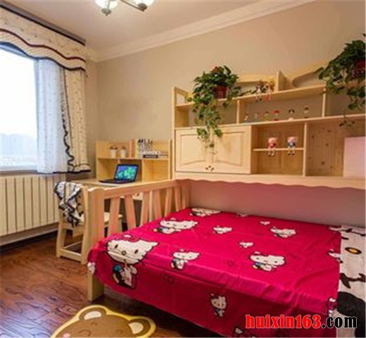 与一般家装风格对儿童房的处理运用多种亮色的表达不同的是,这套设计只是零星的选取了其中一些局部的点来进行如此装饰,而大部分区域空间遵循了日式传统系列家装的基本创作思路,依托空间和户型的优势,进行与儿童生活习惯相吻合的手法进行整体布局。