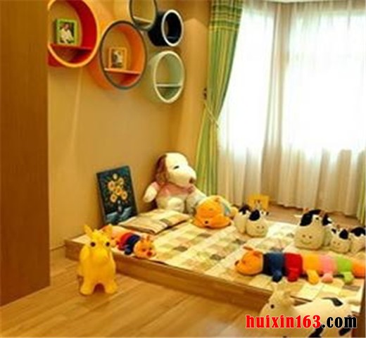与一般家装风格对儿童房的处理运用多种亮色的表达不同的是,这套设计只是零星的选取了其中一些局部的点来进行如此装饰,而大部分区域空间遵循了日式传统系列家装的基本创作思路,依托空间和户型的优势,进行与儿童生活习惯相吻合的手法进行整体布局。