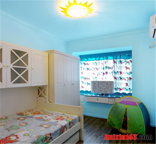 与一般家装风格对儿童房的处理运用多种亮色的表达不同的是,这套设计只是零星的选取了其中一些局部的点来进行如此装饰,而大部分区域空间遵循了日式传统系列家装的基本创作思路,依托空间和户型的优势,进行与儿童生活习惯相吻合的手法进行整体布局。