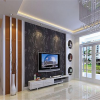 影视墙看似只是起到一个背景的作用,但是在与整套房屋进行协调搭配的总体处理上,往往起着很大的装饰作用,视觉上能给人符合观影环境的整体冲击力,感官上能给人刺激。因此影视墙的装饰装修在实际操作过程中是一个重要的环节。此案整体大气从容、淡然别致。