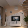 这套影视墙的设计从直观效果看上去,非常的有趣。构思巧妙的色彩把握将整面墙呈现出优雅华丽的状态。创意无限的线条配合将它的设计理念很好的诠释了出来,同时,依托着整个职能空间的特点,将影视墙的功能性和实用性,以及最重要的观赏性做到了有机的统一。
