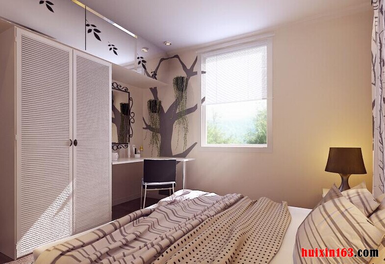 现代风的卧室装修,不管怎么装饰布置,都离不开一个明亮的光线,而窗户的安装设计就是重中之重,通过窗户才能让室内有一个亮丽饱和的自然光线,在搭配上灯饰的照射,不管是吊灯、射灯、壁灯或者是灯带等等,才能给人一种清新,雅致的感觉,与此同时还需要搭配上窗帘来调节空间的采光,深色还是浅色这就需要根据房间的实际情况来进行选择。