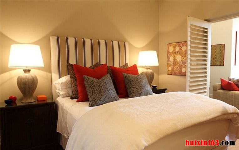 现代风的卧室装修,不管怎么装饰布置,都离不开一个明亮的光线,而窗户的安装设计就是重中之重,通过窗户才能让室内有一个亮丽饱和的自然光线,在搭配上灯饰的照射,不管是吊灯、射灯、壁灯或者是灯带等等,才能给人一种清新,雅致的感觉,与此同时还需要搭配上窗帘来调节空间的采光,深色还是浅色这就需要根据房间的实际情况来进行选择。