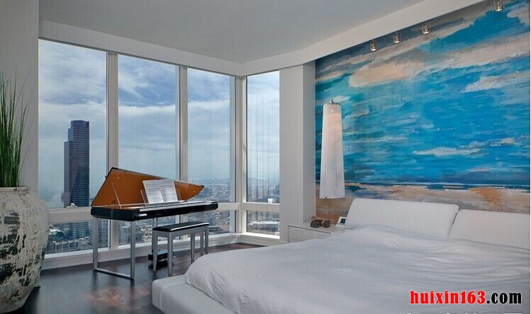 现代风的卧室装修,不管怎么装饰布置,都离不开一个明亮的光线,而窗户的安装设计就是重中之重,通过窗户才能让室内有一个亮丽饱和的自然光线,在搭配上灯饰的照射,不管是吊灯、射灯、壁灯或者是灯带等等,才能给人一种清新,雅致的感觉,与此同时还需要搭配上窗帘来调节空间的采光,深色还是浅色这就需要根据房间的实际情况来进行选择。