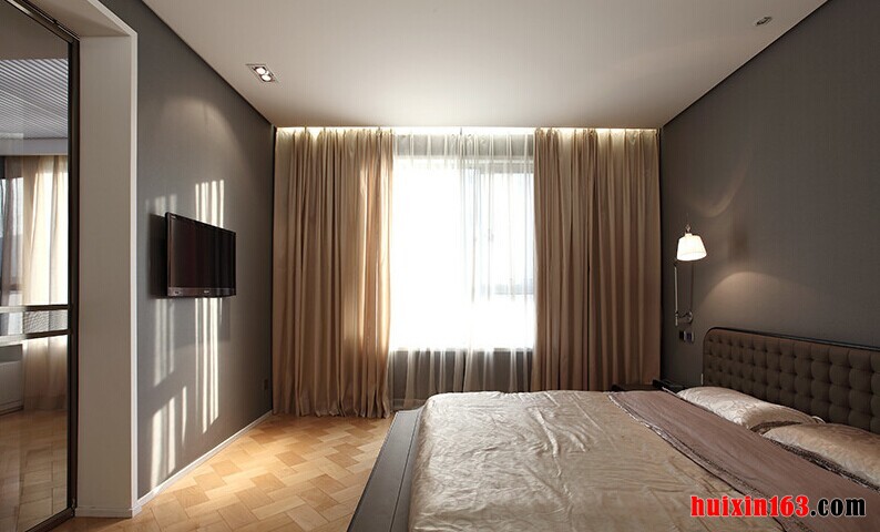 现代风的卧室装修,不管怎么装饰布置,都离不开一个明亮的光线,而窗户的安装设计就是重中之重,通过窗户才能让室内有一个亮丽饱和的自然光线,在搭配上灯饰的照射,不管是吊灯、射灯、壁灯或者是灯带等等,才能给人一种清新,雅致的感觉,与此同时还需要搭配上窗帘来调节空间的采光,深色还是浅色这就需要根据房间的实际情况来进行选择。