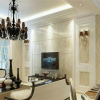 墙上的装饰性元素,一方面与整个职能空间的氛围相互协调,另一方面也充分体现出房间主人的文化内涵。设计师遵循相关设计理念,利用合适的风格元素符合,配合装饰元素的点缀作用,努力营造与影视墙的功能生和观赏性相一致环境。收到了良好的效果。