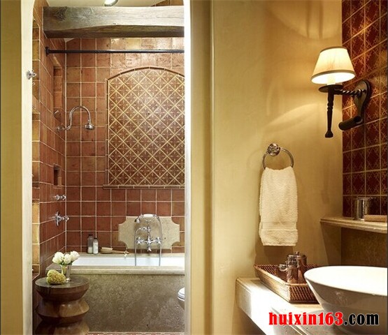 在卫生间的装修过程当中,为了方便色彩的搭配,可以使用一点具有点缀性的瓷砖来铺贴墙面,卫生间的装修大多数都是使用白色的瓷砖,在通过墙砖腰线以及装饰性的花砖来修饰墙面,因为白色的瓷砖属于消色系的色彩,能与任何色彩进行搭配使用,这时就可以采用其他色彩的瓷砖来对墙面进行点缀。