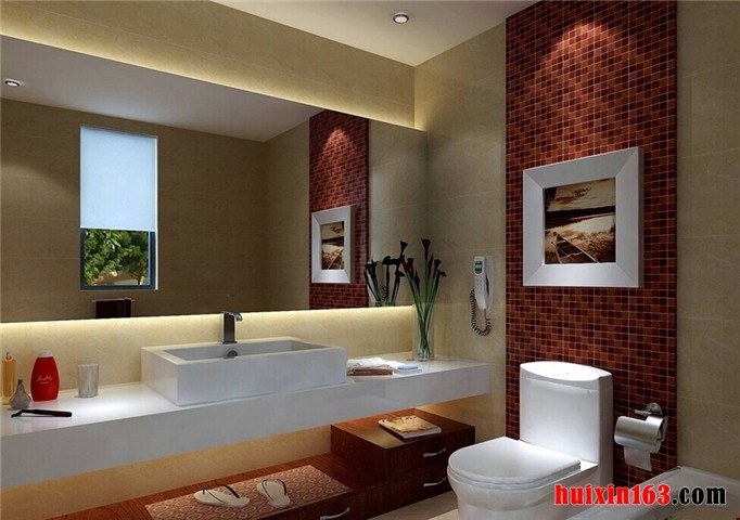 在卫生间的装修过程当中,为了方便色彩的搭配,可以使用一点具有点缀性的瓷砖来铺贴墙面,卫生间的装修大多数都是使用白色的瓷砖,在通过墙砖腰线以及装饰性的花砖来修饰墙面,因为白色的瓷砖属于消色系的色彩,能与任何色彩进行搭配使用,这时就可以采用其他色彩的瓷砖来对墙面进行点缀。