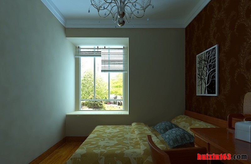 卧室的整个装饰着重点在实木装饰上,白色的石膏板吊顶装饰加深了空间的通透和延伸感,一个大型的古典吊灯的使用更是让空间的环境温馨和惬意,整体装修效果是非常的奢华和具有浓烈的古典气息的。此套设计整体色调尽显古香古色之基调,古典家装元素被运用到家装的方方面面,实木地板,连同电视背景墙都是跟地板一样的色调,尽显古朴典雅,墙纸的运用跟整个色调极其一致。