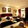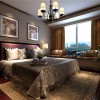 卧室的整体装饰简约舒适又明了,白色的石膏板吊顶装备搭配上造型奇特的大型水晶灯的使用瞬间提升了空间的开阔性和奢华感,实木的家具搭配给人的舒适感比较强烈,卧室的奢华大气带来更多的诠释。