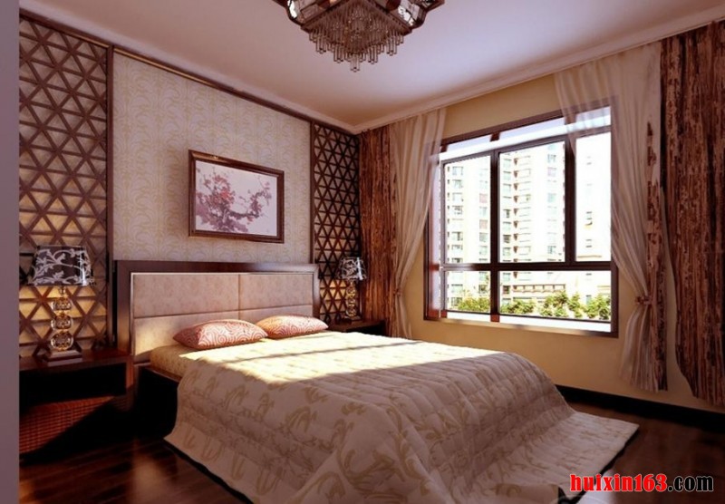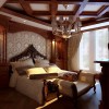 卧室的整体装饰简约舒适又明了,白色的石膏板吊顶装备搭配上造型奇特的大型水晶灯的使用瞬间提升了空间的开阔性和奢华感,实木的家具搭配给人的舒适感比较强烈,卧室的奢华大气带来更多的诠释。