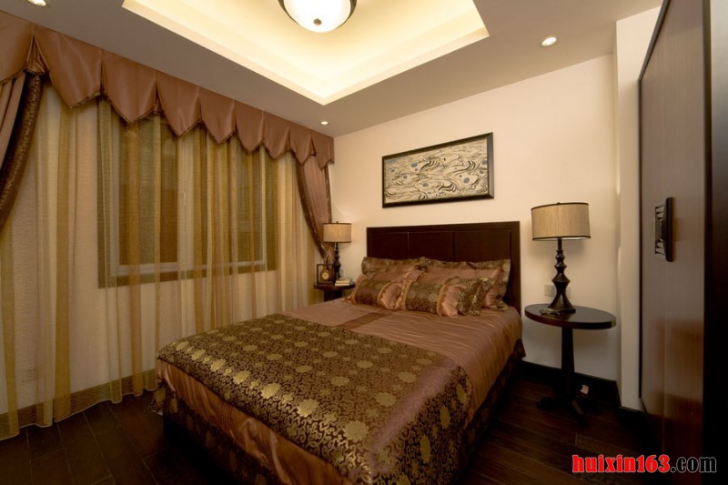 卧室的整体装饰简约舒适又明了,白色的石膏板吊顶装备搭配上造型奇特的大型水晶灯的使用瞬间提升了空间的开阔性和奢华感,实木的家具搭配给人的舒适感比较强烈,卧室的奢华大气带来更多的诠释。