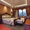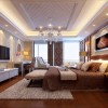 卧室的整体装饰简约舒适又明了,白色的石膏板吊顶装备搭配上造型奇特的大型水晶灯的使用瞬间提升了空间的开阔性和奢华感,实木的家具搭配给人的舒适感比较强烈,卧室的奢华大气带来更多的诠释。