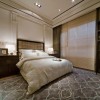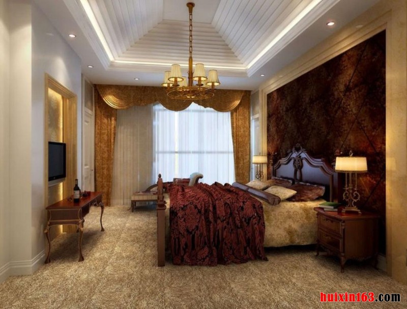 卧室的整个装饰新颖又大气,白色的石膏板吊顶装置搭配上实木的雕刻边框,加上古典的大型灯饰的使用更具有大气凛然的感觉,实木地板的使用提升了室内的舒适度还从一定的程度上加深了主人的生活品味。