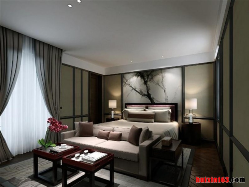 卧室以现代人的审美情趣营造一个富有中国传统家居韵味的生活空间,对称的空间布局搭配简朴的造型设计,让色彩浓重的居室有了舒适的变化,体现出成熟优雅的气质,无声地流露出厚重的文化底蕴和居住者静雅内敛的生活境界。