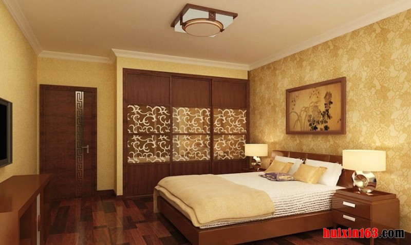 卧室的装饰当中,平顶式的石膏板吊顶,如果单纯的以纯白色为背景,未免显得比较单调,但是搭配上实木线条的装饰,就显得比较富有色彩感和设计感,而实木添置的家具以及亮丽的地砖混合使用,在视觉效果上迎面就能感受到古典的木质气息。