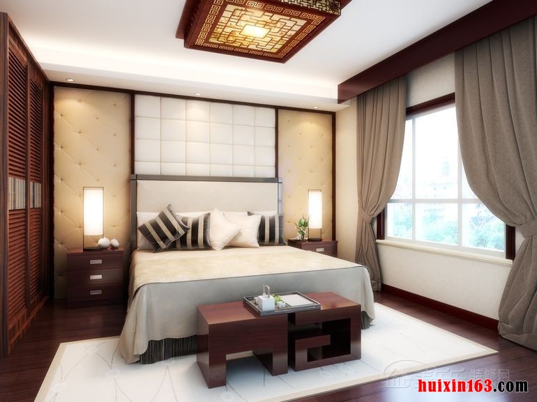 卧室的装饰当中,平顶式的石膏板吊顶,如果单纯的以纯白色为背景,未免显得比较单调,但是搭配上实木线条的装饰,就显得比较富有色彩感和设计感,而实木添置的家具以及亮丽的地砖混合使用,在视觉效果上迎面就能感受到古典的木质气息。
