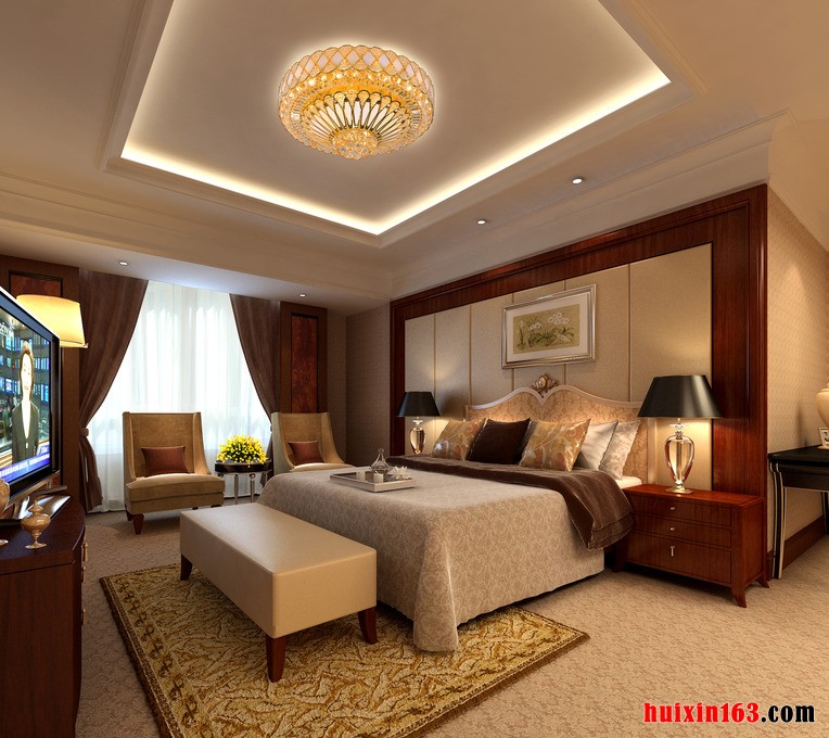 卧室的装饰当中,平顶式的石膏板吊顶,如果单纯的以纯白色为背景,未免显得比较单调,但是搭配上实木线条的装饰,就显得比较富有色彩感和设计感,而实木添置的家具以及亮丽的地砖混合使用,在视觉效果上迎面就能感受到古典的木质气息。