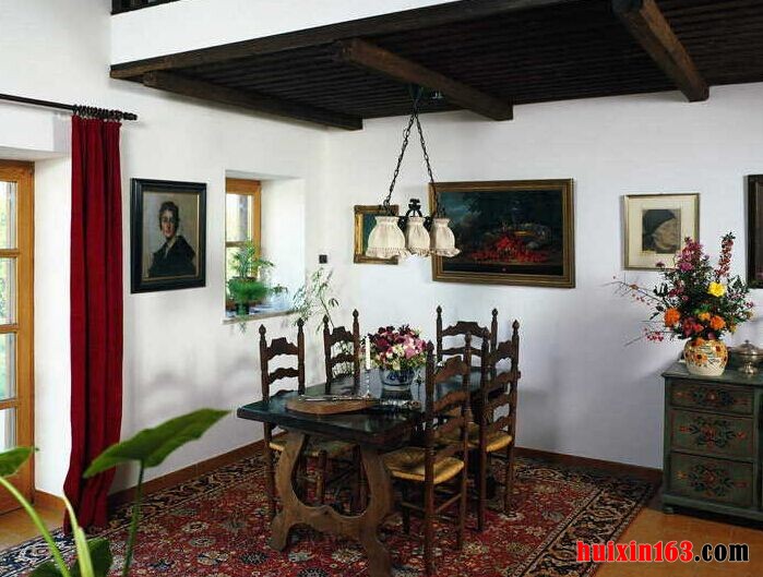 在美式田园风格中花卉是一定不可缺少的装饰物品,清新淡雅的香气浓郁却不妖娆的色彩,搭配上空间内设计简洁的家具,自然会带给人们无限的舒适感,人们也可以从中感受到一丝清新。 本套餐厅装饰中吊顶上的设计十分具有个性,装饰木条与石膏板的结合更是凸显了美式风格的设计感,二中间悬挂的铁艺吊灯则为空间装饰增添了一丝古典气息,使整个空间都显得十分典雅、精致。 更多»推荐家装效果图