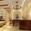 本套餐厅装饰中石膏板吊顶的设计十分吸引人,石膏板中间镶嵌了以免带有格子图案的镜面装饰,搭配上水晶吊灯的照射,整个空间都会显得十分大气,同时也显得更加明亮,更加凸显了空间装饰的时尚感。