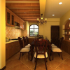 美式风格的居室装修会带给人们一种大气感,他并不会像欧式风风格那样展现奢华之美,却在它的大气中也会透露出一丝精致的美感,而这些美感只能在细节中透露出来,这样的装饰效果也会带给人们一种新鲜感,十分受年轻人追捧。 本套餐厅的整体装饰效果可以带给我们一种时尚感,空间内的墙壁上安装了一面镜面装饰,这样的设计搭配可以是整个空间都显得十分明亮,同时整个空间也因此而显得更加通透。 更多»推荐家装效果图