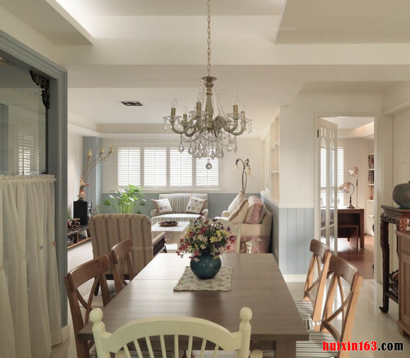 美式风格装饰的整体效果可以带给人们一种干净的舒适感,空间内的整体装饰色彩会比较淡雅,内部的装饰物品比较有讲究,可能是一幅抽象画也可能是以多新鲜花束,搭配在这样的空间内,都会带给人们一种新鲜感。