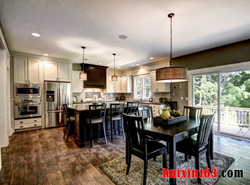 美式风格的餐厅装饰中往往都会用花束来点缀空间,娇嫩的花朵摆放在餐桌中间可以活跃空间气氛并且可以使整个空间都充满清新的气息,在搭配上灯光以及墙壁色彩的衬托,更是可以将设计感彰显的淋漓尽致。