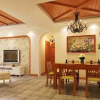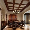 本套餐厅装饰中石膏板吊顶的设计采用了平顶式的设计,中间悬挂了一盏造型简单却又十分具有时尚气息的装饰吊灯,整体的装饰搭配是下方的实木餐桌显得更加典雅。同时也彰显了装饰的个性。