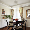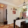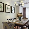 美式风格的餐厅装饰中往往都会用花束来点缀空间,娇嫩的花朵摆放在餐桌中间可以活跃空间气氛并且可以使整个空间都充满清新的气息,在搭配上灯光以及墙壁色彩的衬托,更是可以将设计感彰显的淋漓尽致。 本套餐厅装饰中石膏板吊顶的设计采用了平顶式的设计,中间悬挂了一盏造型简单却又十分具有时尚气息的装饰吊灯,整体的装饰搭配是下方的实木餐桌显得更加典雅。同时也彰显了装饰的个性。 更多»推荐家装效果图