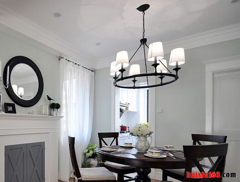 美式风格的餐厅装饰中往往都会用花束来点缀空间,娇嫩的花朵摆放在餐桌中间可以活跃空间气氛并且可以使整个空间都充满清新的气息,在搭配上灯光以及墙壁色彩的衬托,更是可以将设计感彰显的淋漓尽致。