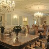 本套餐厅装饰中石膏板吊顶的设计采用了平顶式的设计,中间悬挂了一盏造型简单却又十分具有时尚气息的装饰吊灯,整体的装饰搭配是下方的实木餐桌显得更加典雅。同时也彰显了装饰的个性。