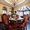 美式风格居室装修的整体效果可以带给人们一种独特的高雅气质,空间内的装饰并不张扬,但却可以以一种独特的方式展示个性与时尚,空间内的灯饰、配饰、窗帘以及整体的色调搭配都可以将美式风格的独特魅力彰显无遗。 本套餐厅装饰中石膏板吊顶的设计比较独特,中间悬挂了一盏造型别致却带有一丝古典气息的装饰吊灯,将下放的红色餐桌也衬托的更加具有古典气息,一款素雅的桌旗横铺在餐桌上方,更加彰显了装饰的大气。 更多»推荐家装效果图