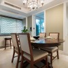 本套餐厅装饰中石膏板吊顶的设计比较独特,中间悬挂了一盏造型别致却带有一丝古典气息的装饰吊灯,将下放的红色餐桌也衬托的更加具有古典气息,一款素雅的桌旗横铺在餐桌上方,更加彰显了装饰的大气。