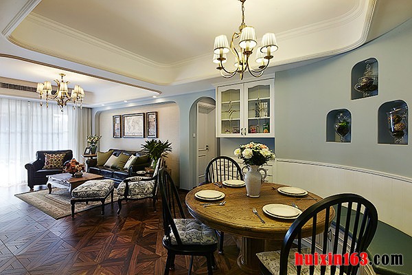 美式风格的家具往往都会拥有精美的轮廓,优秀的质地,从而可以使整个空间都显得十分具有自然气息,美式风格的居室装修也会比较注重细节的处理,可以从细小的处理中彰显出一种美式风格的涵韵。