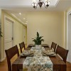 美式风格的家具往往都会拥有精美的轮廓,优秀的质地,从而可以使整个空间都显得十分具有自然气息,美式风格的居室装修也会比较注重细节的处理,可以从细小的处理中彰显出一种美式风格的涵韵。 本套餐厅装饰中空间内的色彩搭配比较素雅,石膏板吊顶采用了平顶式的设计,可以将中间的水晶吊灯衬托的更加精致,灰色的水晶吊坠搭配上黑色的铁艺吊杆,更是可以将灯饰的华美彰显的淋漓尽致。 更多»推荐家装效果图
