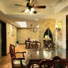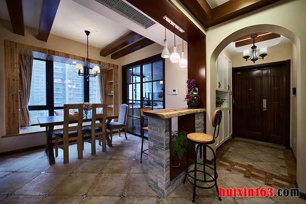 美式风格的装饰也会分古典和现代,现下比较流行复古装饰,所以在我们身边选择古典风格的装饰的业主比较多,古典装饰并不意味着没有新鲜气息,我们也可以在装饰中适当的添加一些现代元素,这样更容易被年轻人接受。 本套餐厅装饰比较简洁,石膏板吊顶上添加了装饰木方做装饰,可以将中间的吊灯衬托的十分别致,下方的实木餐桌并没有过多的造型设计,但这种大气之势也正是因此而彰显出来的。 更多»推荐家装效果图