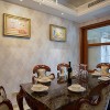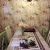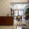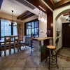 本套餐厅装饰比较简洁,石膏板吊顶上添加了装饰木方做装饰,可以将中间的吊灯衬托的十分别致,下方的实木餐桌并没有过多的造型设计,但这种大气之势也正是因此而彰显出来的。