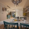 本套餐厅装饰比较简洁,石膏板吊顶上添加了装饰木方做装饰,可以将中间的吊灯衬托的十分别致,下方的实木餐桌并没有过多的造型设计,但这种大气之势也正是因此而彰显出来的。