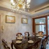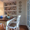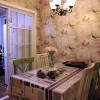 本套餐厅装饰比较简洁,石膏板吊顶上添加了装饰木方做装饰,可以将中间的吊灯衬托的十分别致,下方的实木餐桌并没有过多的造型设计,但这种大气之势也正是因此而彰显出来的。